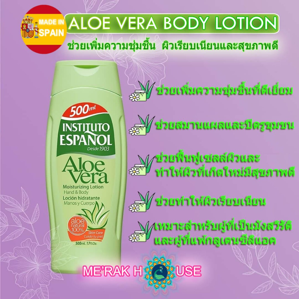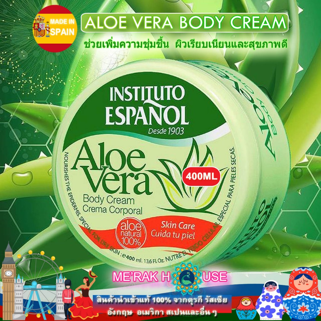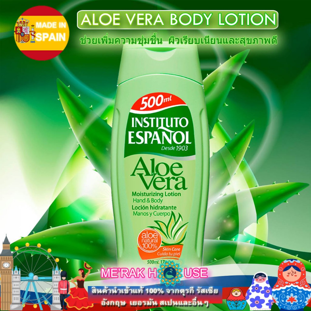 INSTITUTO ESPANOL โลชั่น ครีมบำรุงผิว บอดี้ครีม "ALOE VERA" เพื่อเพิ่มความชุ่มชื้นและผิวเรียบเนียน จากสเปน 3 แบบ 3 ขนาด