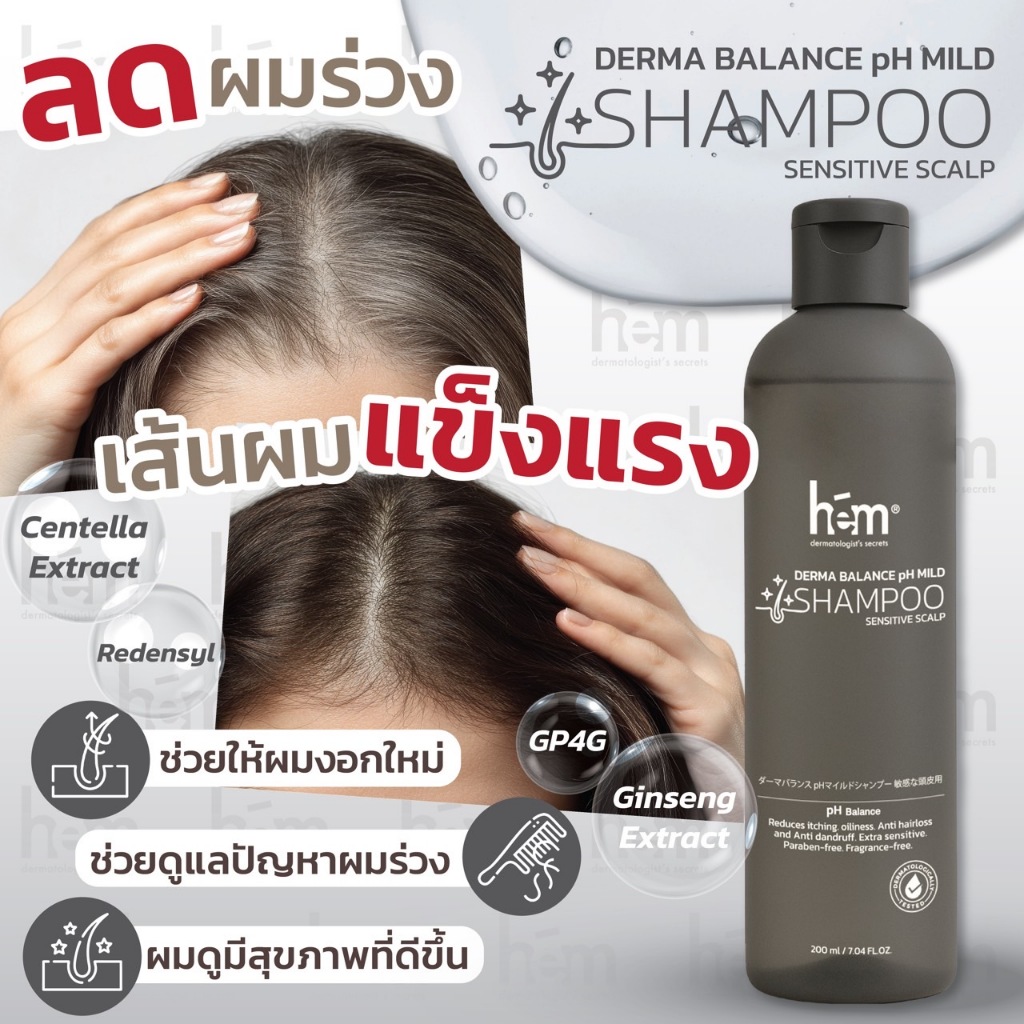 H.E.M DERMA BALANCE pH MILD SHAMPOO SENSITIBE SCALP เดอร์ม่า บาลานซ์ แชมพู เซ้นซิทีฟ สแคลพ 250 ml