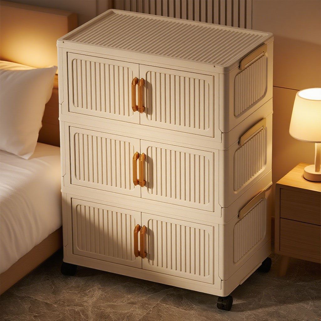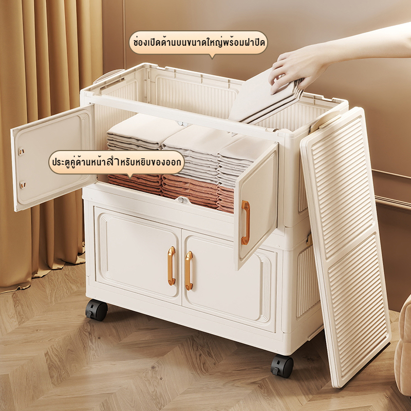 JoyParty ตู้เก็บของพลาสติก ตู้อเนกประสงค์ ความจุแบริ่ง 200KG ลิ้นชักขนาดใหญ่ ตู้เสื้อผ้าที่มีล้อสามารถพับเก็บได้ สไตล