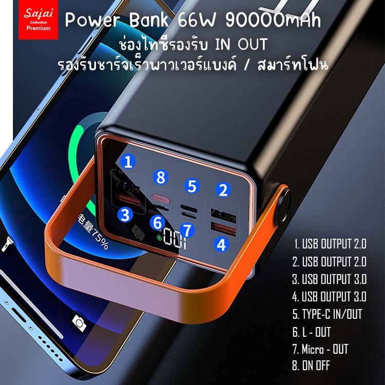 ของแท้100% SAJAI Powerbank YM-655 66W 40000/90000mAh PD22.5W พาวเวอร์แบงค์