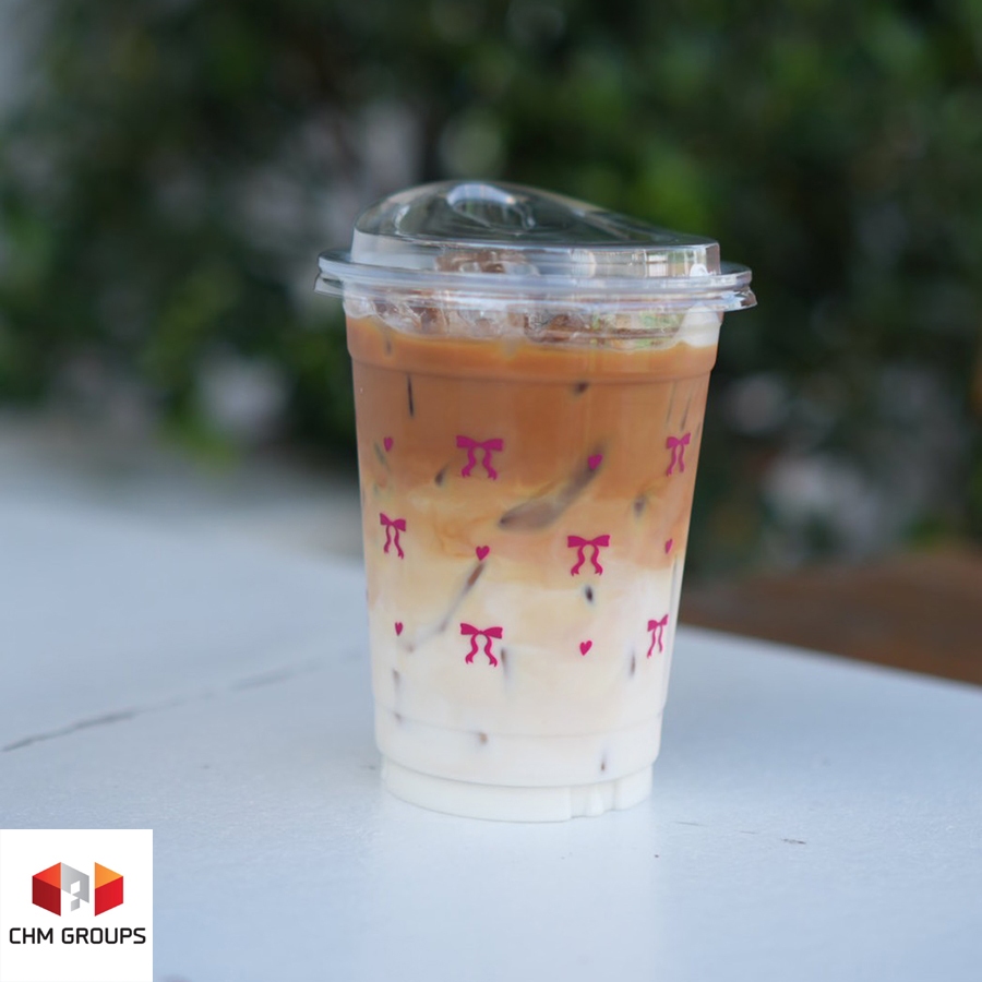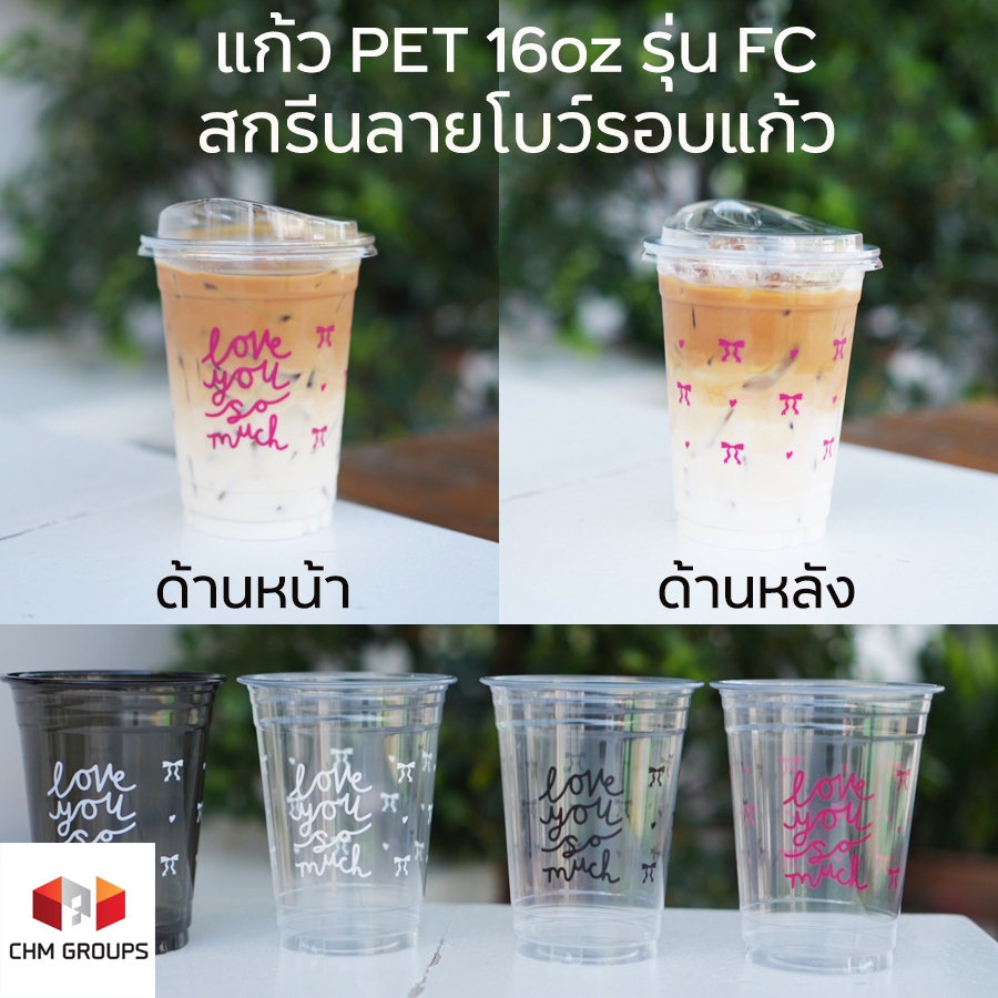 CHM-BOW-FC-100 : แก้ว PET ยี่ห้อ FPC 16oz รุ่น FC สกรีนลายโบว์รอบแก้ว มีสีให้เลือก บรรจุ 100 ใบ (เฉพาะแก้วไม่รวมฝา)