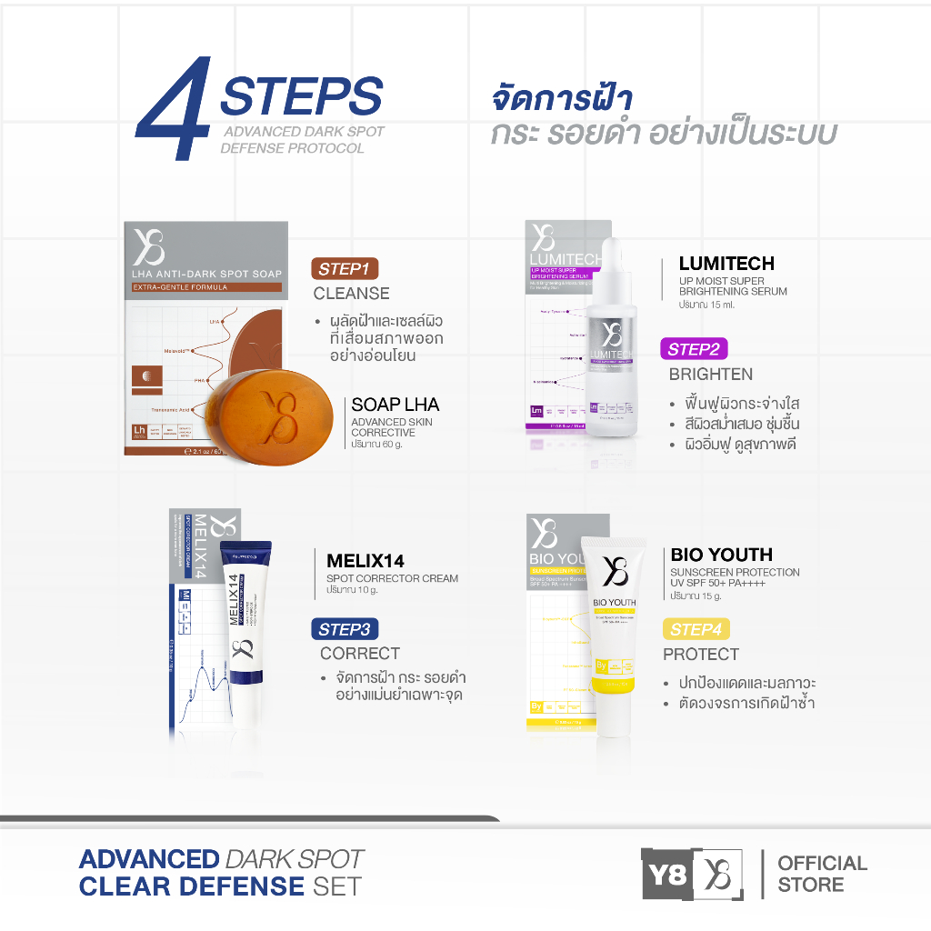 [ LUMITECH+Bio Youth+สบู่ฝ้า+Melix ] Y8 Melix + LUMITECH + BIO YOUTH SUNSCREEN + LHA ANTI-DARK SOAP