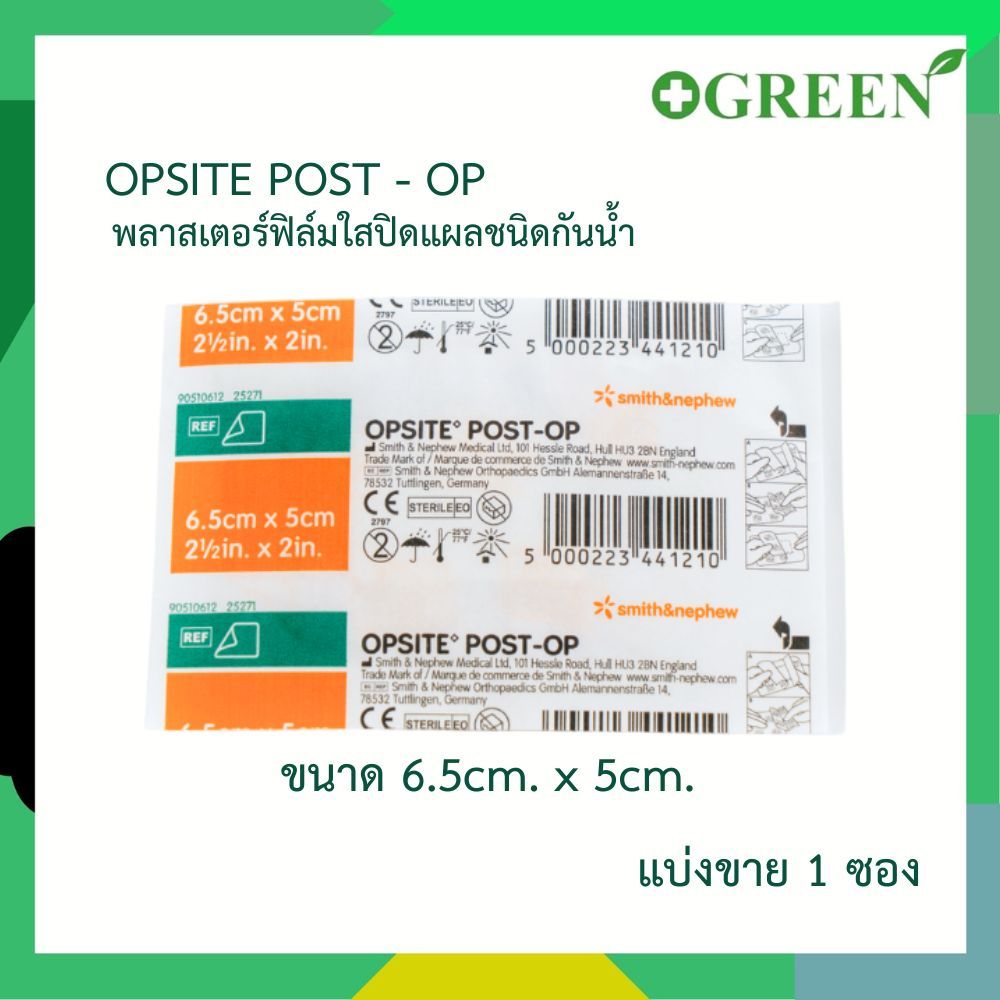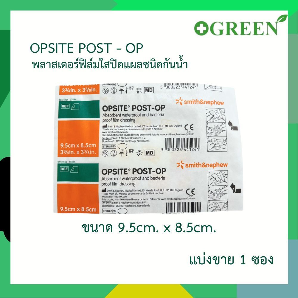 SMITH & NEPHEW OPSITE POST-OP พลาสเตอร์ฟิล์มใสปิดแผลชนิดกันน้ำ [แบ่งขาย 1 แผ่น] พร้อมแผ่นซึมซับ