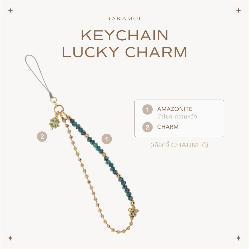 AMAZONITE - KEYCHAIN LUCKY CHARM พวงกุญแจหินมงคลแถมฟรีจี้ 1 ชิ้น