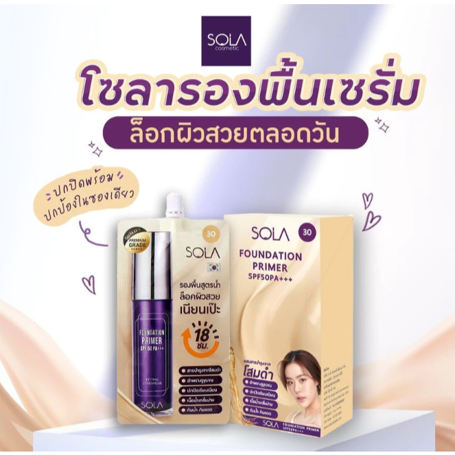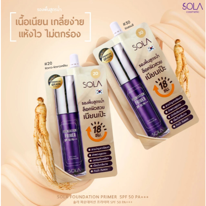 (ยกกล่อง/6ซอง) SOLA Foundation PRIMER SPF 50 PA+++ 7 ml.โซลา รองพื้น ไพรเมอร์