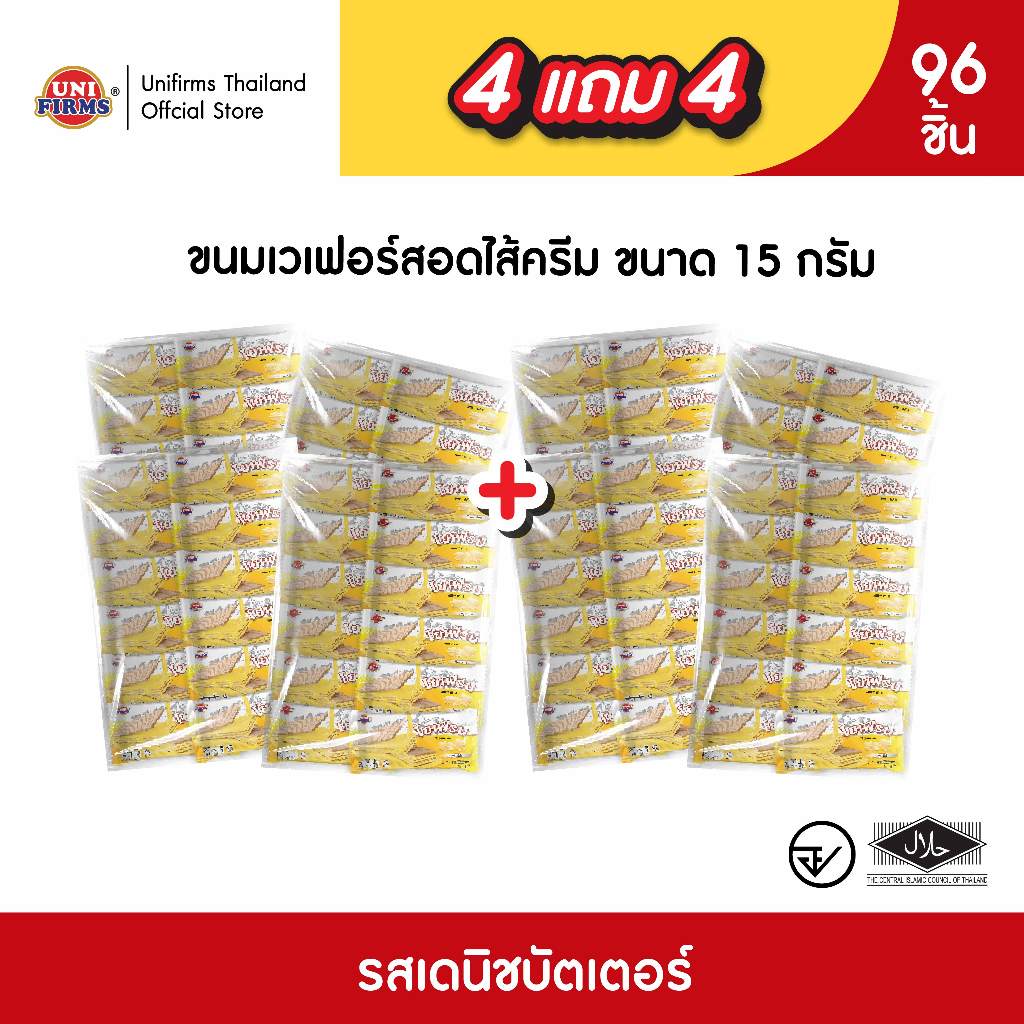 ขนมเวเฟอร์ [4 แถม 4] โยเฟรนเวเฟอร์ สอดไส้ครีม ขนาด 15 กรัม (1 แพ็ค 12 ชิ้น)