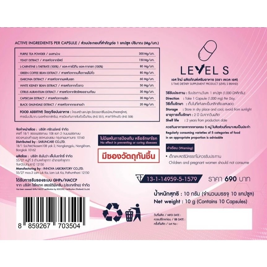[โปรโมชั่น] สูตรใหม่ Level S S Series เลเวล เอส เอส ซีรีย์ อาหารเสริม ลาล่า 1 กล่อง 10 แคปซูล ของแท้