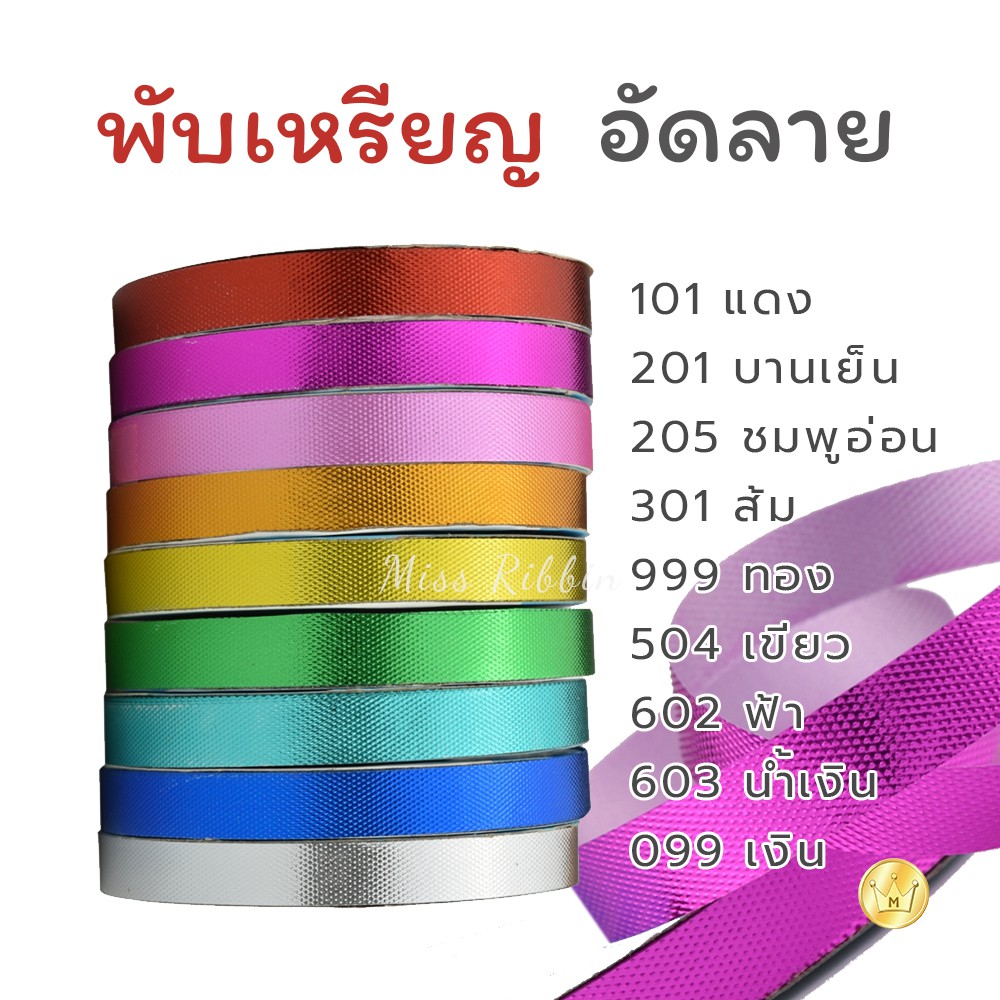 ริบบิ้นตราระฆัง ยาว50หลา ริบบิ้นอัดลาย ผิวสัมผัสแตกต่าง พับเหรียญ ทำโบว์