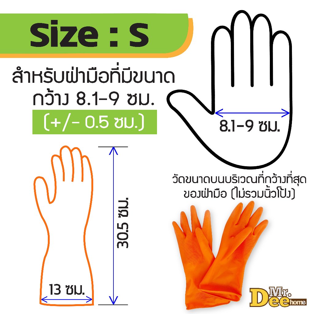 ถุงมือยางธรรมชาติหนา ถุงมือแม่บ้านอเนกประสงค์ สำหรับจัดสวน ทำความสะอาด มีลายกันลื่นไม่มีกลิ่น ไม่มีแป้ง 3ขนาด S/M/L