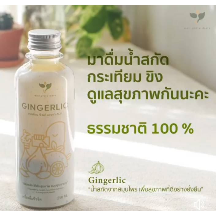 GINGERLIC น้ำกระเทียมขิงสกัด น้ำสมุนไพรสกัดเย็น กระเทียม ขิง มะนาว น้ำแอปเปิ้ลไซเดอร์ ปริมาณ 250ml.