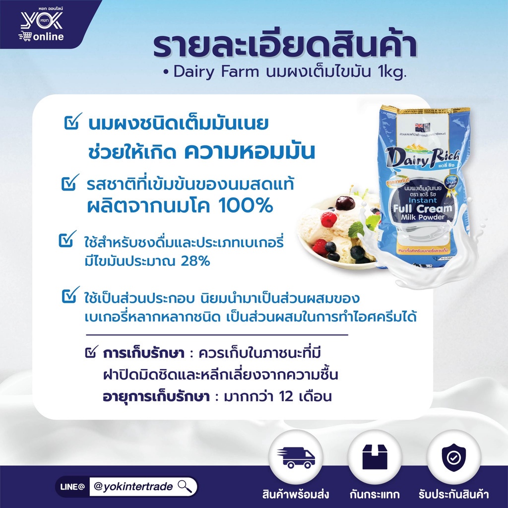 นมผงเต็มมันเนย Dairy Rich 1kg. หยกออนไลน์