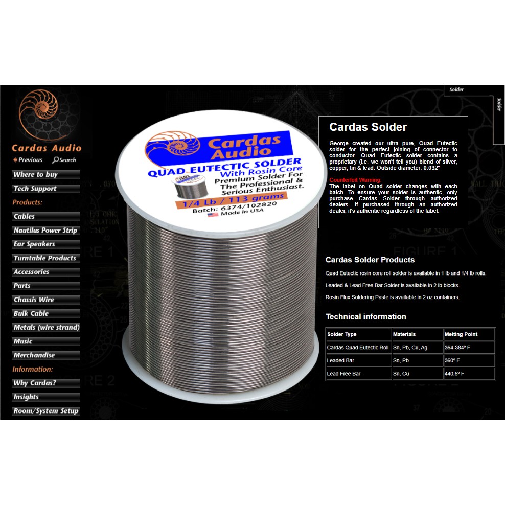 ตะกั่วเงิน Cardas Quad Eutectic Sn, Pb, Cu, Ag Silver Solder ของแท้ จากตัวแทน แบ่งขายราคาต่อ 1เมตร