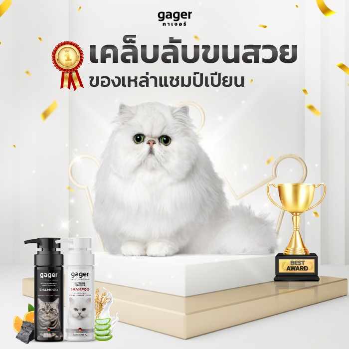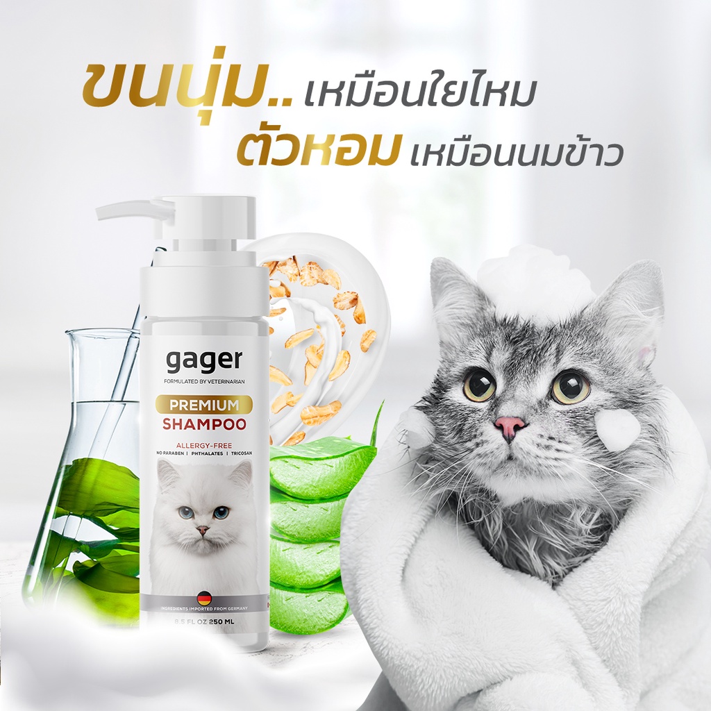 Gager (กาเจอร์) แชมพูอาบน้ำแมว แชมพูแมว บำรุงขน ขนนิ่ม ลดขนร่วง สกัดจากน้ำนมข้าวออแกนิก อ่อนโยน เกรดพรีเมี่ยม (250ml.)
