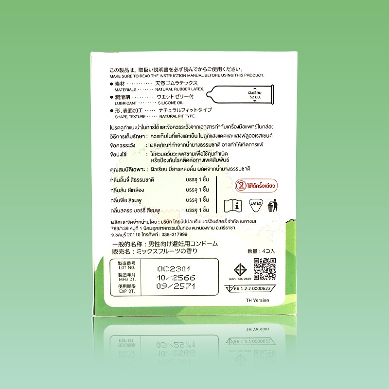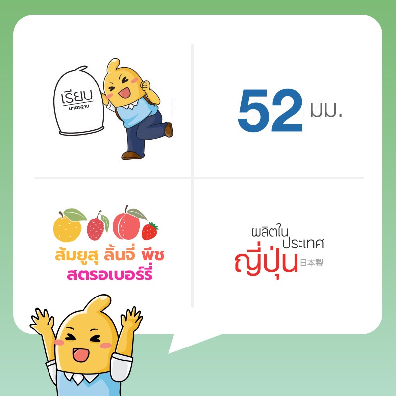 Usu-Pita Tutti Frutti ถุงยางญี่ปุ่น 4 กลิ่น (ส้มยูสุ,ลิ้นจี่,พีช,สตรอเบอร์รี่) ขนาด 52 มม. บรรจุ 1 กล่อง (4 ชิ้น)