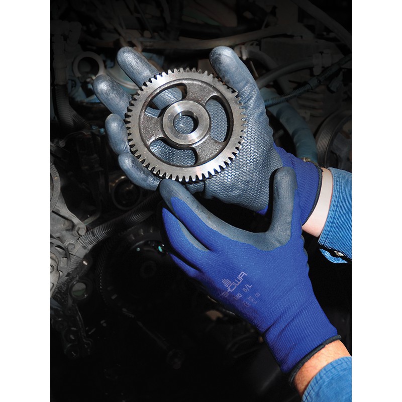 Showa ถุงมือทำงานทั่วไป รุ่น 380 ขนาด L 1 คู่ ถุงมือไนล่อน ทอแบบไร้รอยต่อ เคลือบฝ่ามีอด้วยยางไนไตรล์ กันน้ำมัน