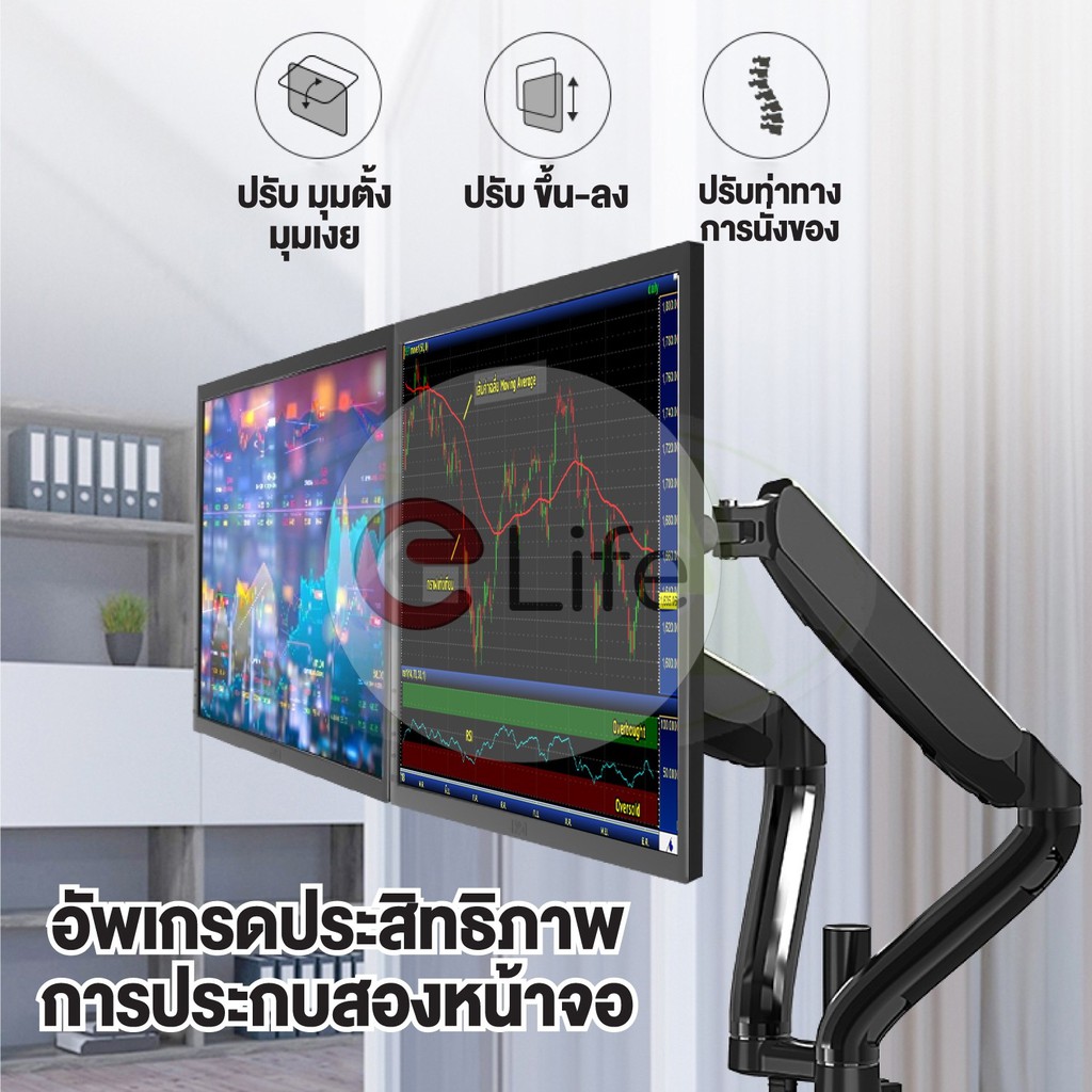 Elife ขาตั้งจอคอม รุ่น ES-CS 95/93 แบบ 2จอ รองรับขนาด 17นิ้ว – 32นิ้ว รับน้ำหนักสูงสุด 9kg หมุนได้ 360 องศา ก้มเงยได้