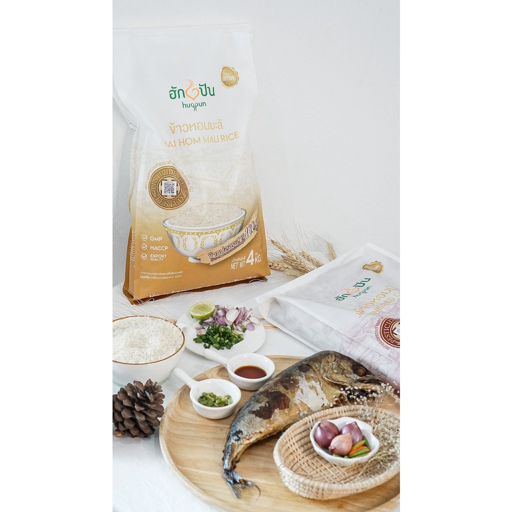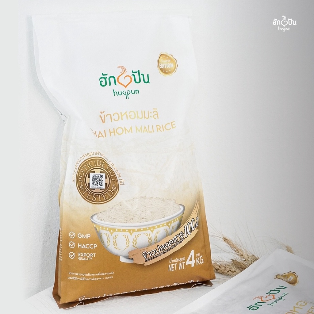 ข้าวหอมมะลิปลอดสาร ตรา ฮักปัน ขนาด 4กก. [ Hugpun Thai Hom Mali Rice 4kg (Pesticide FREE)]