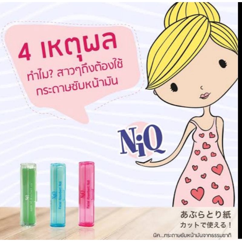 กระดาษซับหน้ามันนิคสีฟ้า/สีเขียว(ยาว500ซม.แถมรีฟิล300ซม.)#niq#นิค#ซับหน้าNiQ #ซับความมัน#ตลับพลาสติก