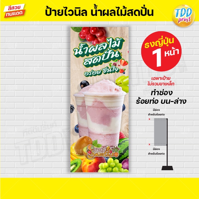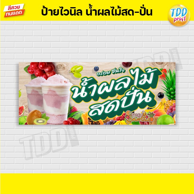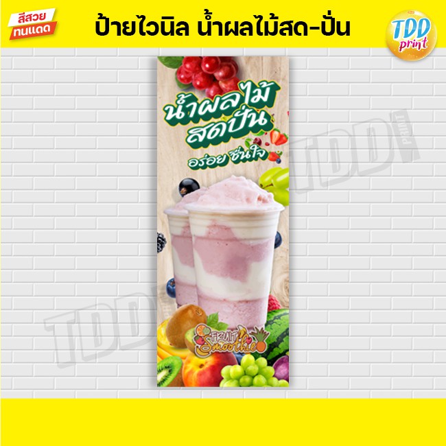 ป้ายไวนิลผลไม้สดปั่น ป้ายกันน้ำ ทนแดด สีสันสดใส พร้อมใช้งาน