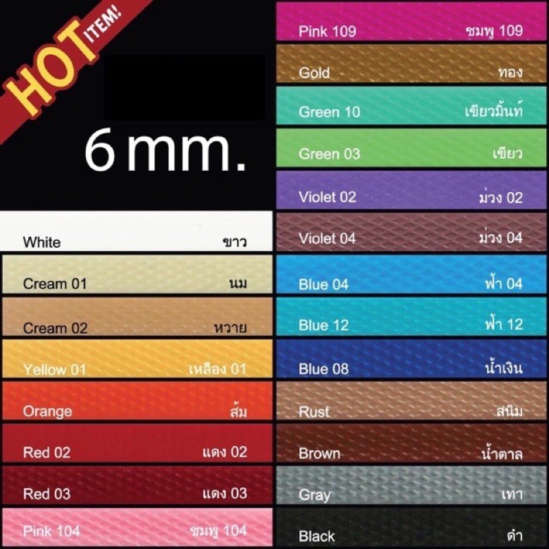 [ตราลูกโจ้] เส้นพลาสติก เส้นพลาสติกสาน ขนาด 6 มิล (ชาร์ทสีรูปถัดไป)