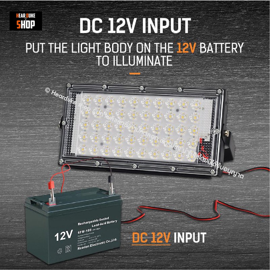 ไฟคีบแบต 150วัตต์ สปอตไลท์ ไฟสว่าง Spotlight LED 9W, 40W, 50W, 80W,100W (ใช้ไฟ12V) แสงขาว