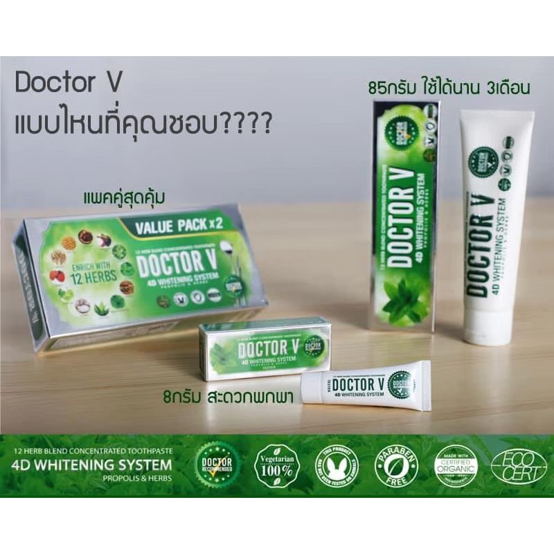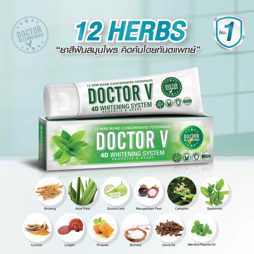 ยาสีฟันด็อกเตอร์ วี สมุนไพรไทยสูตรเข้มข้นพิเศษ 12 ชนิด Doctor V [แพ็คเดียว, แพ็คคู่]