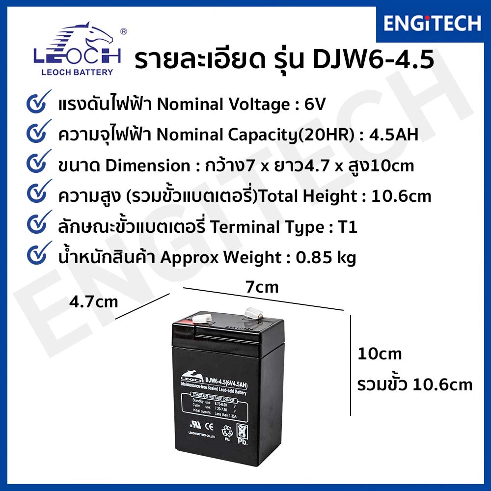LEOCH แบตเตอรี่ แห้ง DJW6-4.5 ( 6V 4.5AH ) VRLA Battery แบต สำรองไฟ UPS ไฟฉุกเฉิน รถไฟฟ้าตาชั่ง