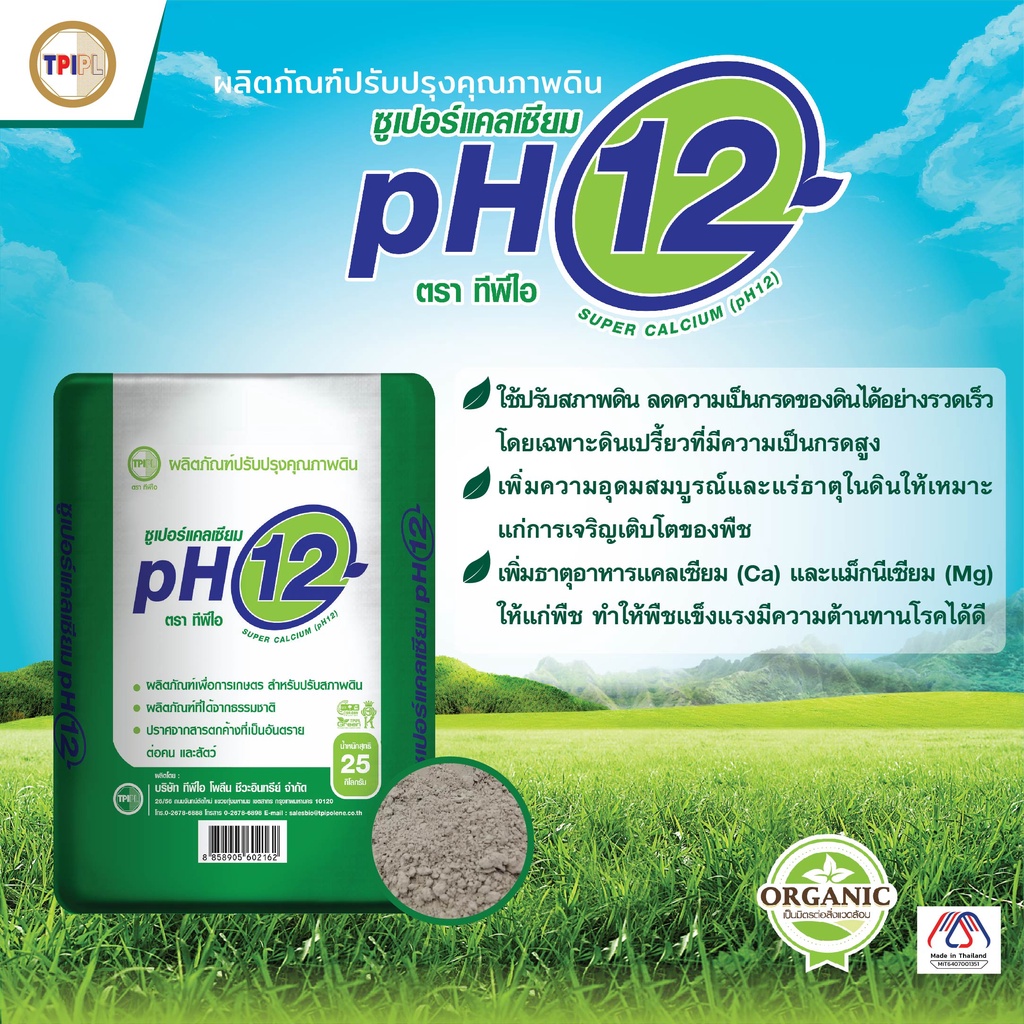 ซูเปอร์แคลเซียม pH 12 สารปรับสภาพดิน ทีพีไอ ขนาด 25 กก.