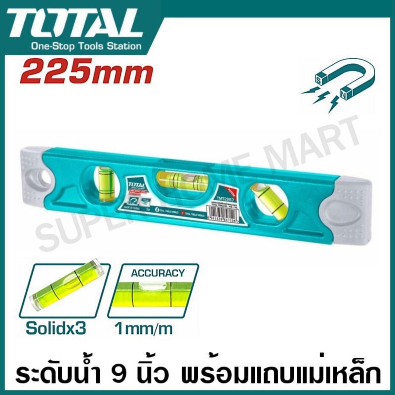 Total ระดับน้ำ มีแม่เหล็ก ขนาด 9 นิ้ว รุ่น TMT2235 / TMT2267 (Level) ระดับน้ำอลูมิเนียม ระดับน้ำมีเนียม แถบแม่เหล็ก