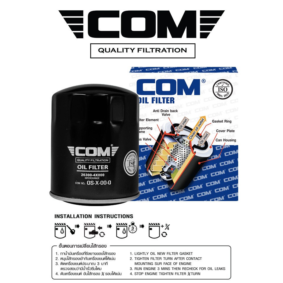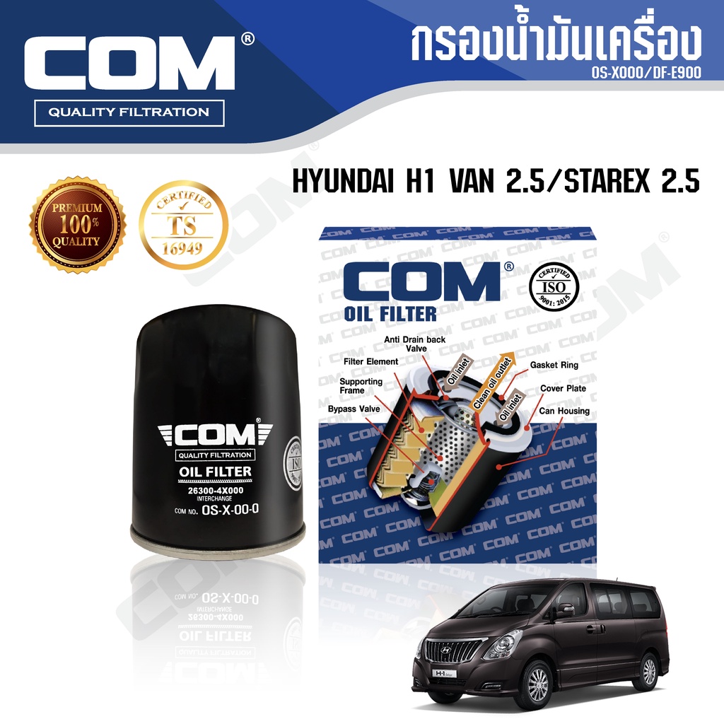 กรองน้ำมันเครื่อง กรองโซล่า HYUNDAI H1 VAN 2.5, STAREX 2.5 , ไส้กรอง COM