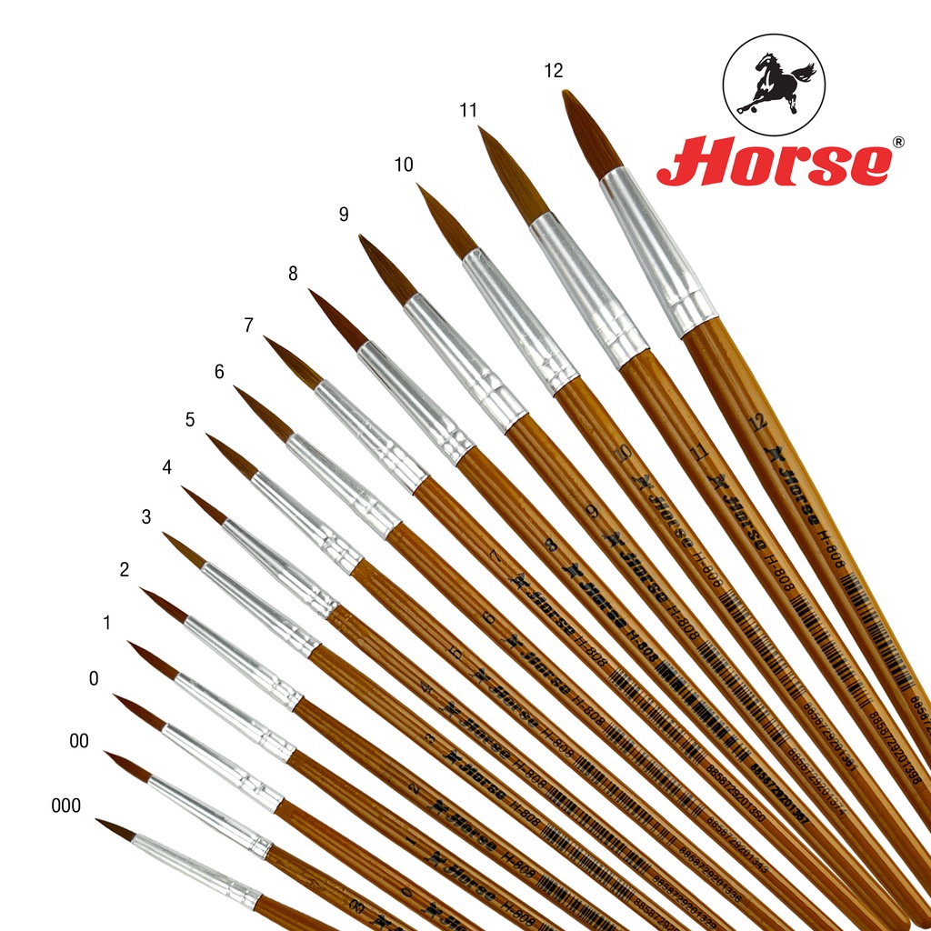 HORSE ตราม้า พู่กันสีน้ำปลายกลม ตราม้า H-808 #000-12 บรรจุ 1 อัน