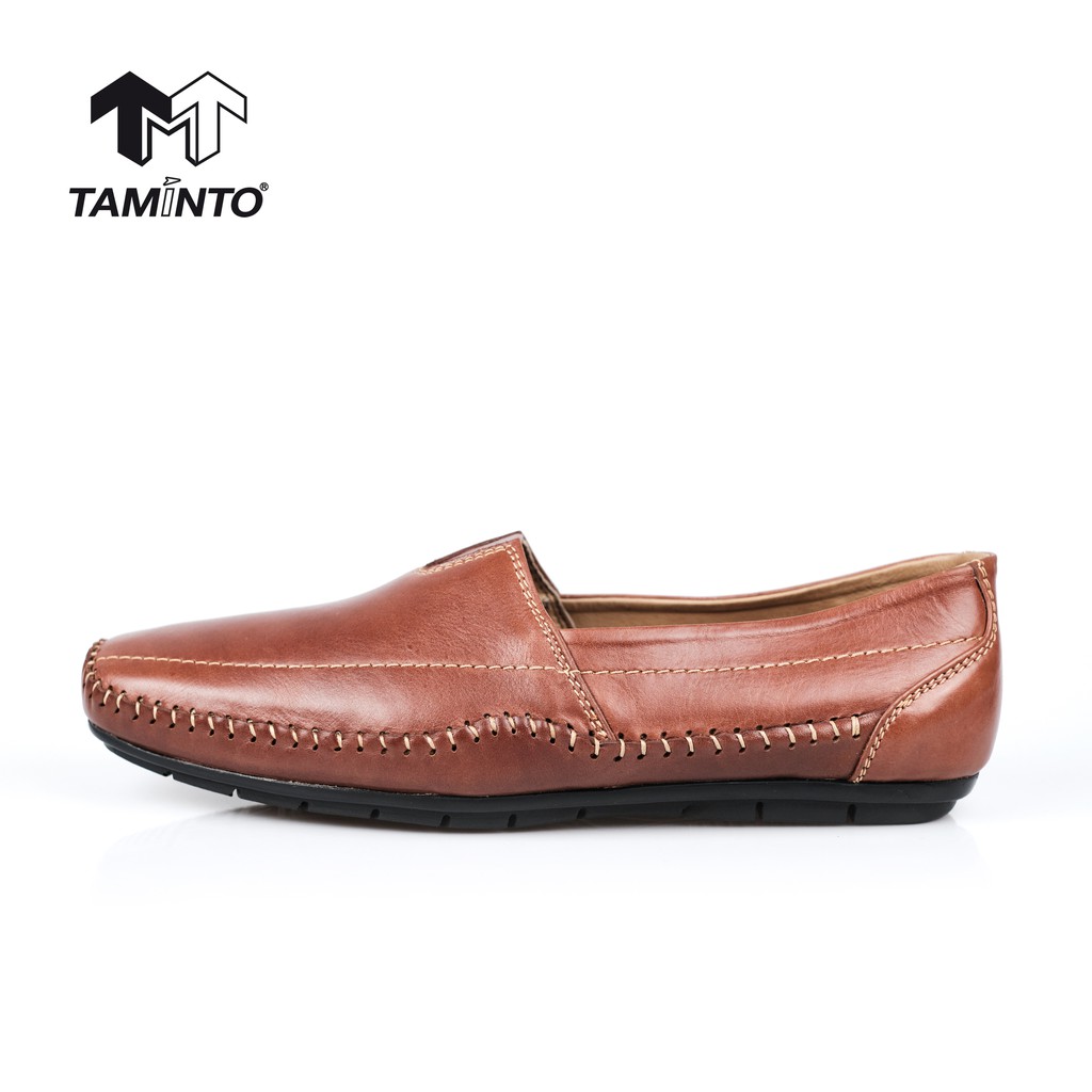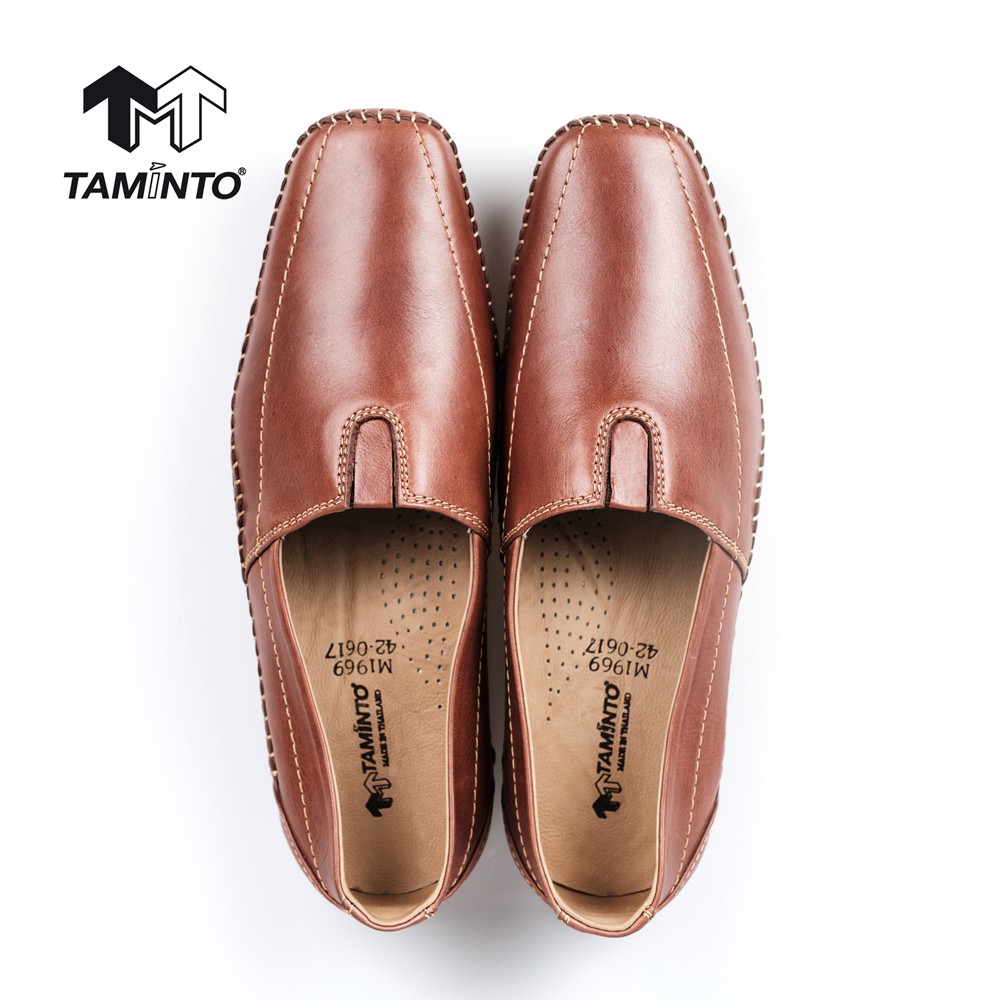 ส่งฟรี! Taminto รองเท้าหนังแท้ ผู้ชาย แบบสวม Moccasin หัวตัด ลำลอง ร้อยมือ นุ่มสบาย M1969