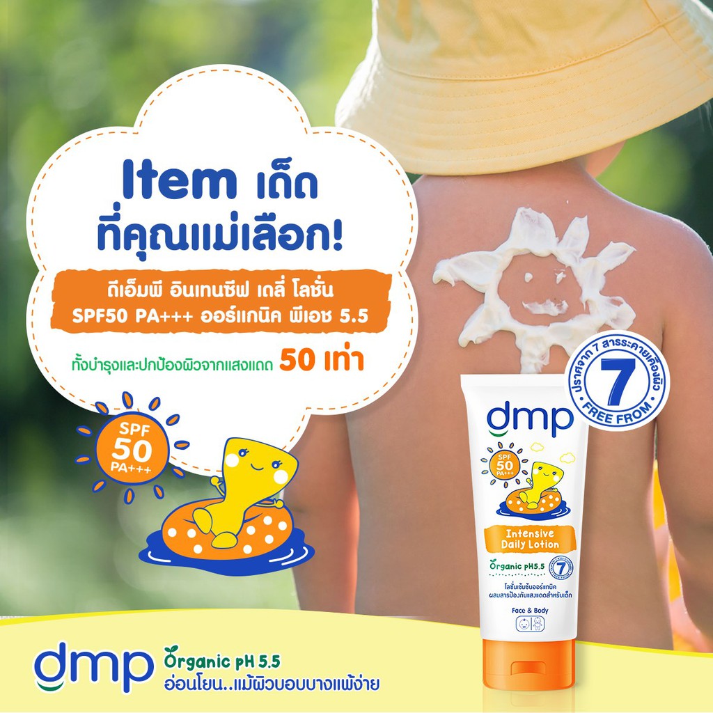 DMP ดีเอ็มพี อินเทนซีฟ เดลี่ โลชั่นเข้มข้นสำหรับผิวหน้า-ผิวกาย ออร์แกนนิค เอสพีเอฟ 50 พีเอ+++ 180 มล.