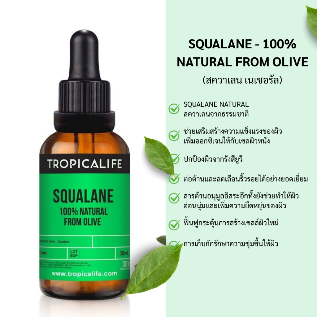 SQUALANE 100% น้ำมันสควาเลน (Squalane from Olive) น้ำมันบำรุงผิว ออยล์ทาผิว FacialOil By tropicalife
