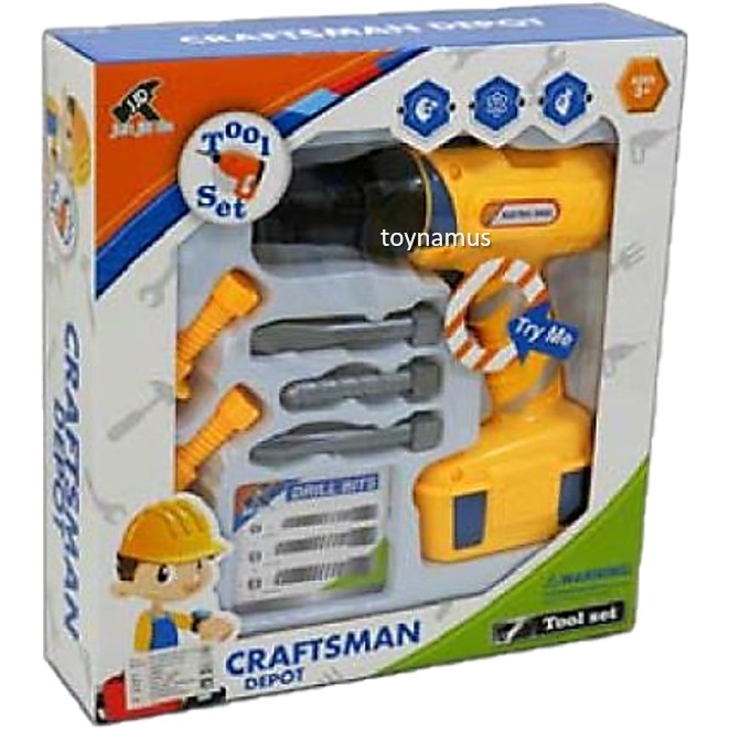 ของเล่นสว่านไฟฟ้าหมุนได้จริง Construction Toy Electric Drill Tool Set ใส่ถ่านหมุนได้