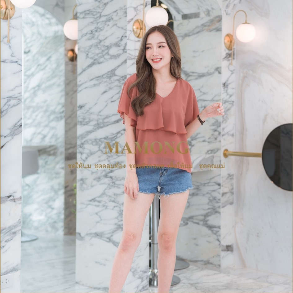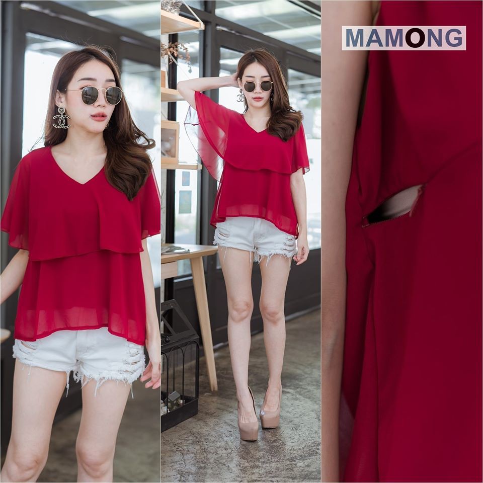 Mamong ชุดให้นม 0010 เสื้อให้นม เสื้อ(คอวี) คลุมไหล่