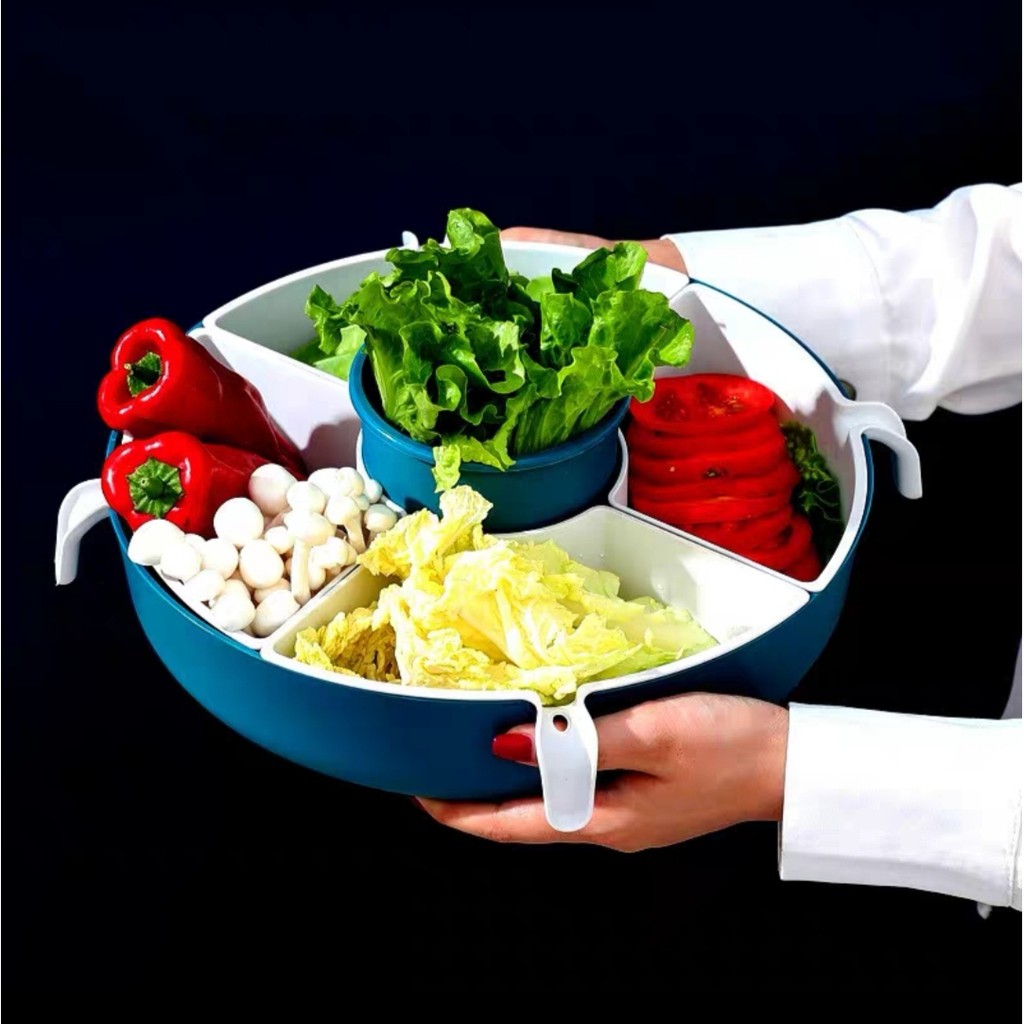 ใหญ่พิเศษ กะละมังล้างผัก ตะกร้าใส่ผัก แยกช่องใส่ผักและอาหาร 5 ช่อง ใหญ่พิเศษ กะละมังใส่ผัก กะละมังล้างผัก ตะแกรงล้างผัก