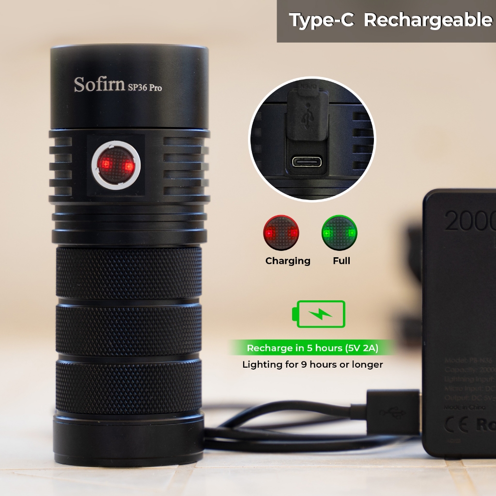 Sofirn SP36Pro 8000 ลูเมนไฟฉายที ่ มีประสิทธิภาพ BLF Anduril Driver 4 *SST40 หลอดไฟ LED ไฟฉายกันน ้ ํา IPX8 USB ชาร ์ จโคมไฟมือถือ