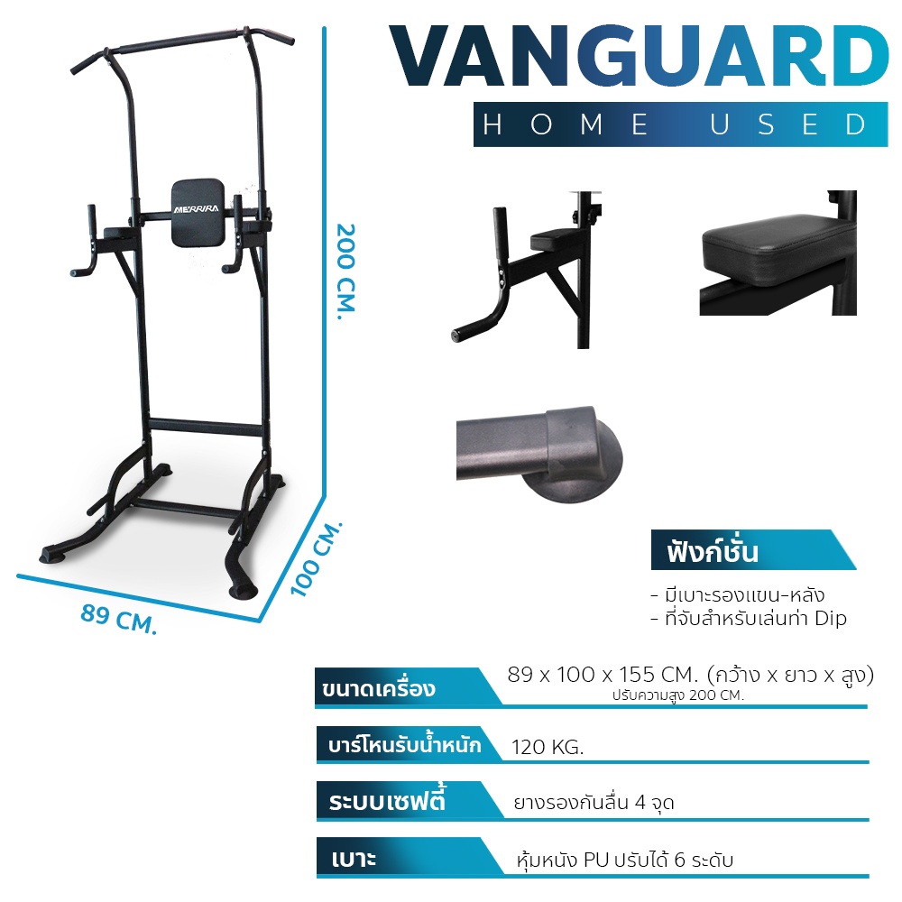 MERRIRA บาร์โหนตั้งพื้น รุ่น VANGUARD เครื่องออกกำลังกายบาร์โหน ที่โหนบาร์ บาร์โหน Pull Up Station โหนบาร์ บาร์ดึงข้อ