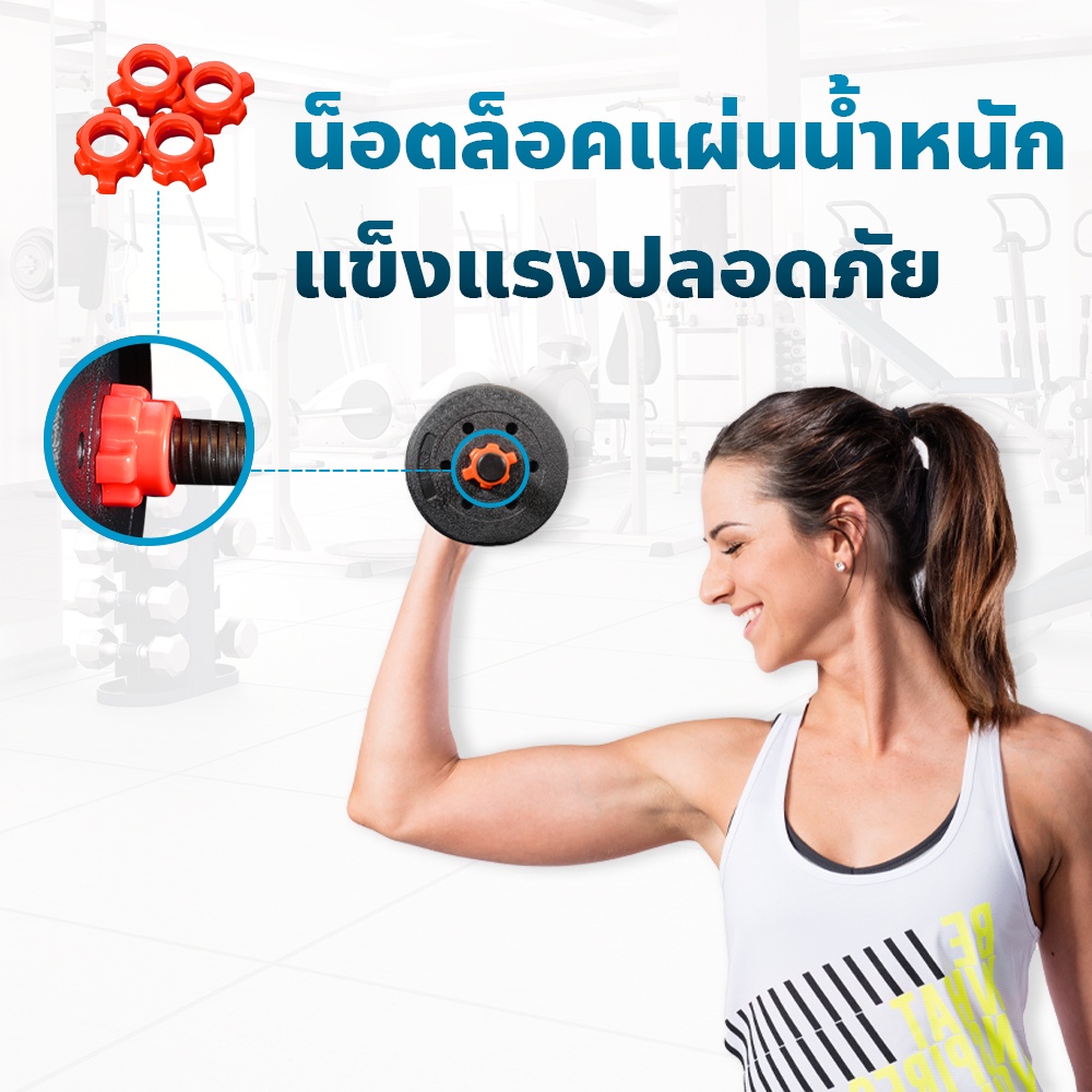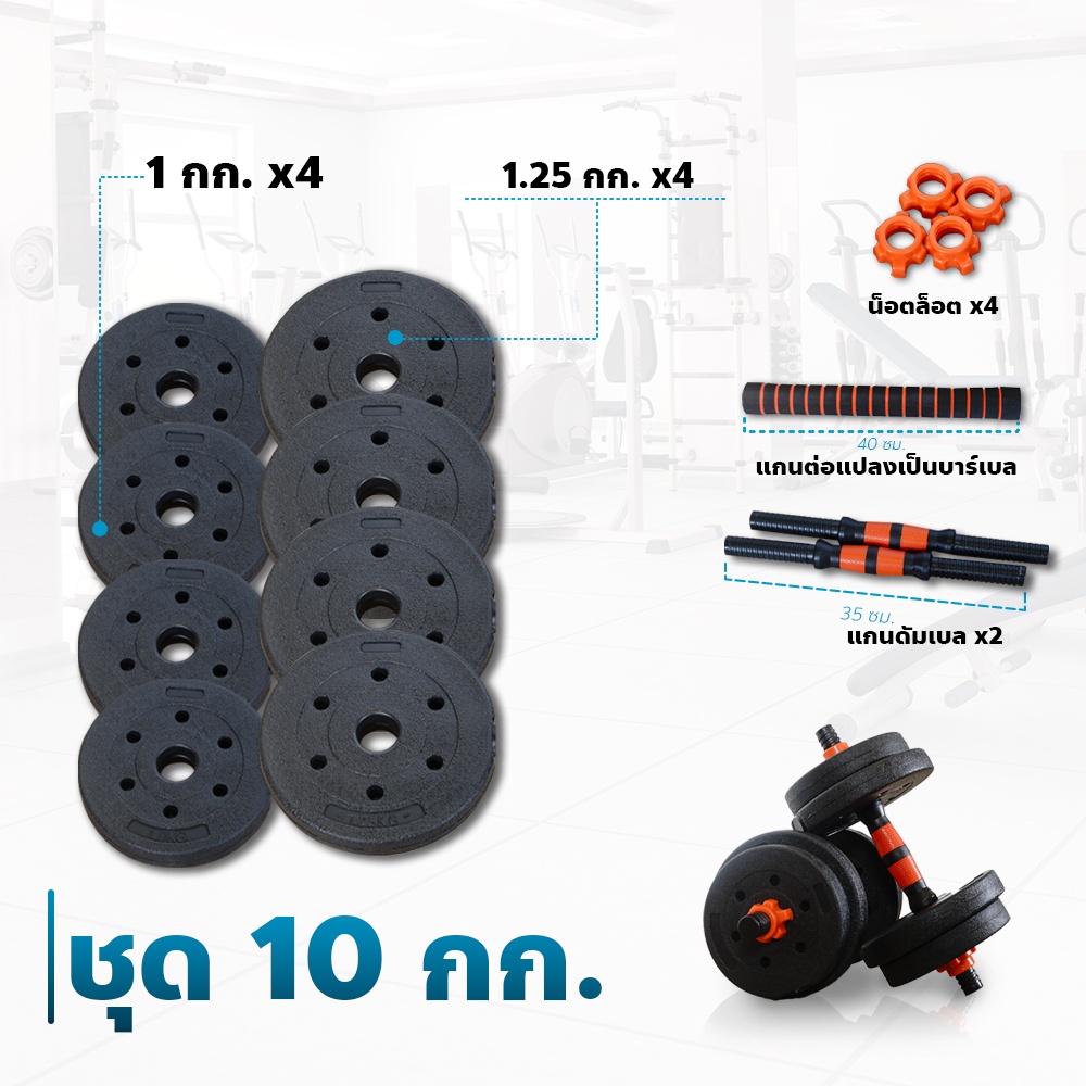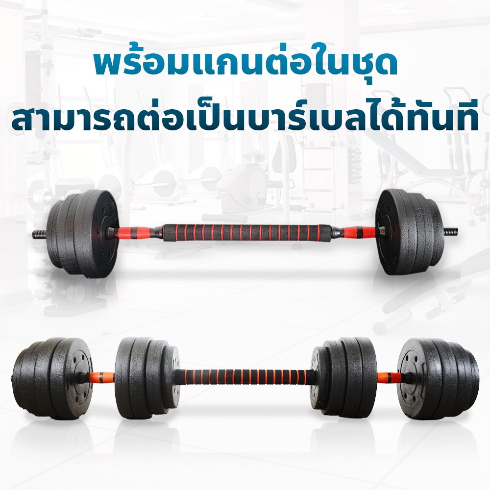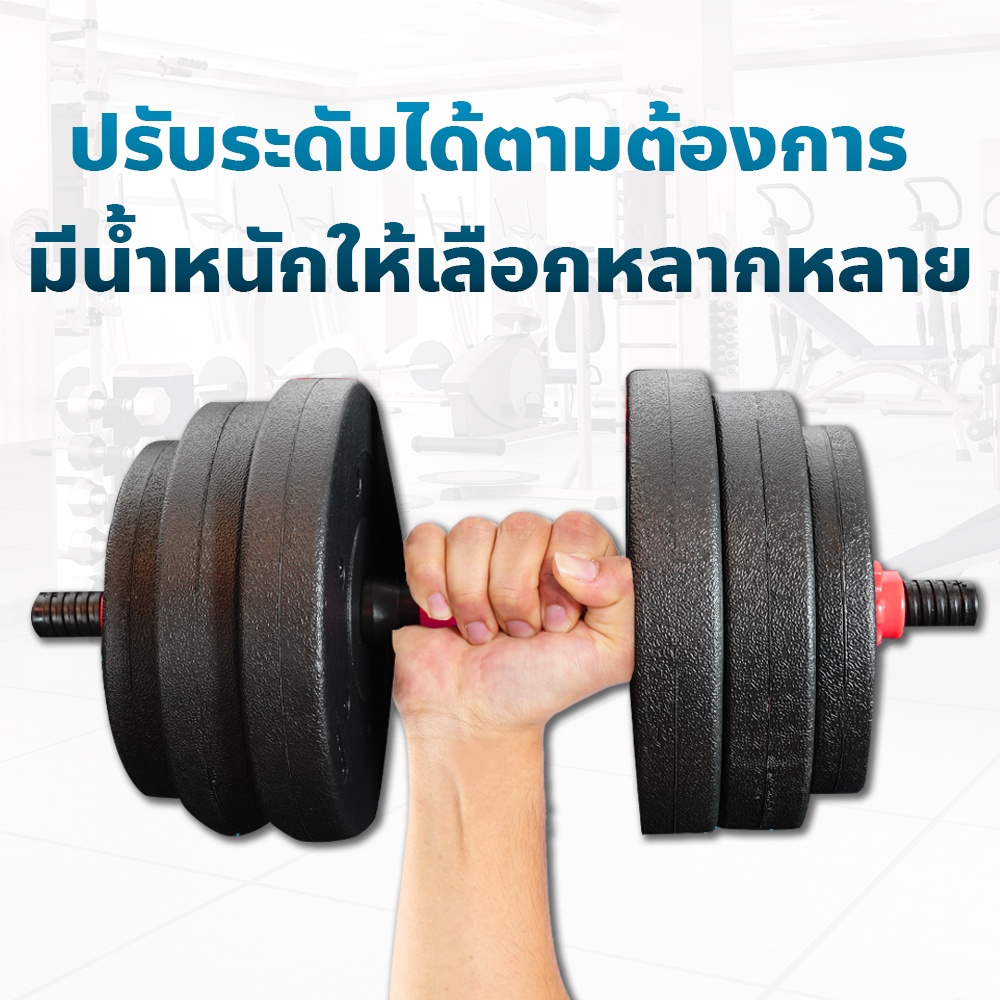 ดัมเบล 10 กก. - ดัมเบล 40 กก. ดัมเบลปูนหุ้มพลาสติก ดัมเบลพลาสติก Cement Dumbbell ฟรี แกนต่อ 40 ซม.