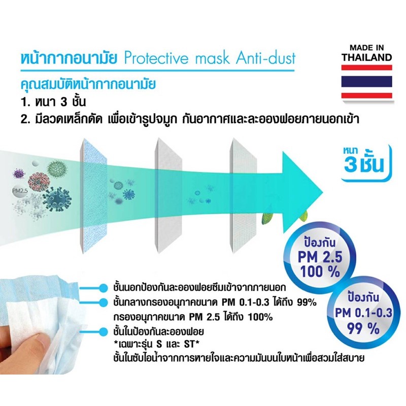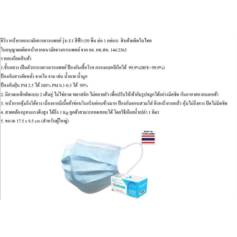 หน้ากากอนามัย 50 ชิ้น/กล่อง mask จีวิว สีฟ้า สีเขียว แนบสนิทหน้า เนื้อสัมผัสนุ่มไม่ระคายผิว 50 ชิ้น/30 ชิ้น