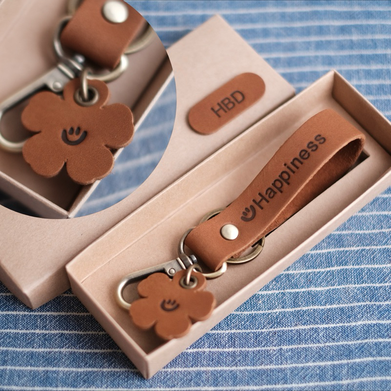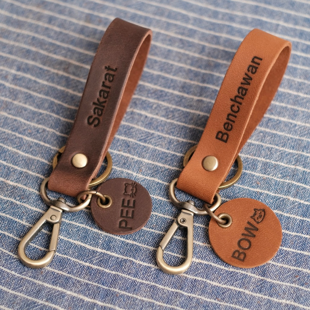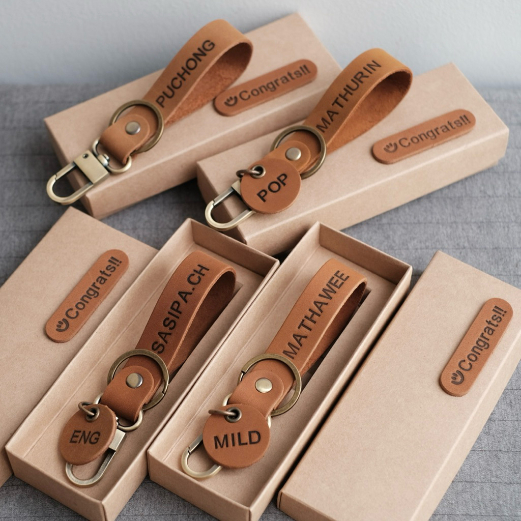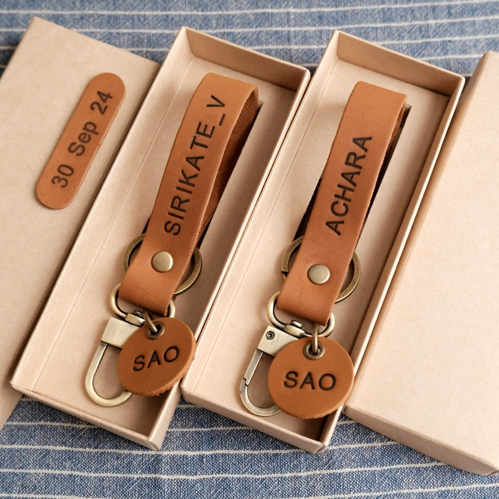 พวงกุญแจหนังแท้ 11x2 cm. พร้อมกล่อง ตะขอ คอหมา