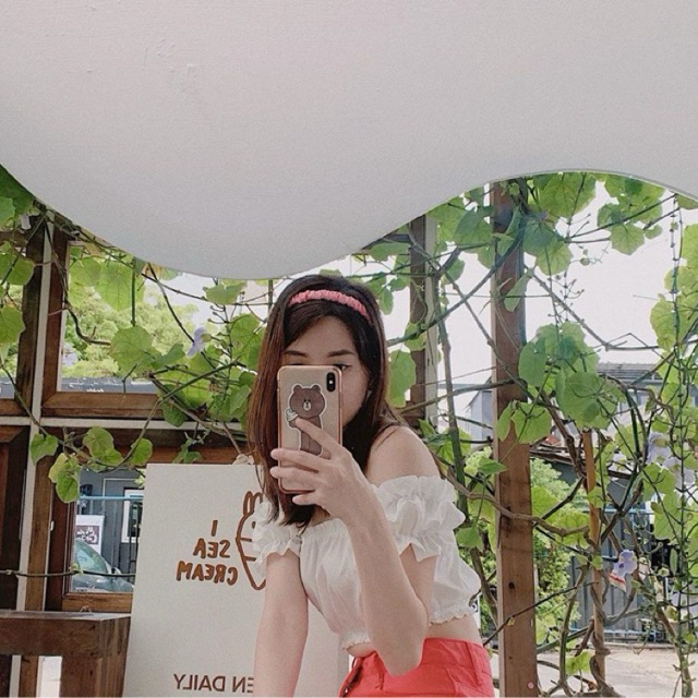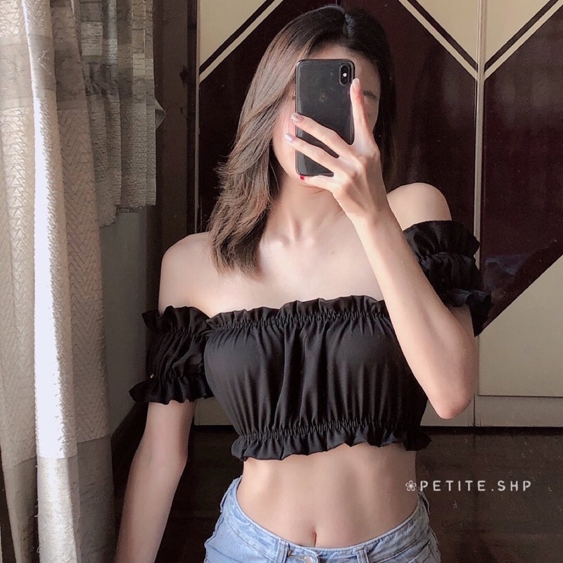 Petite♡︎ Dolly top เสื้อเกาะอกปาดไหล่สม็อคแขน