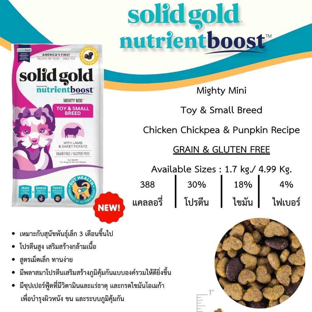 (4-10kg) Solid Gold อาหารสุนัข มีครบทุกสูตร มีโอเมก้า 3 และ 6 ช่วยบำรุงระบบประสาทและสมอง