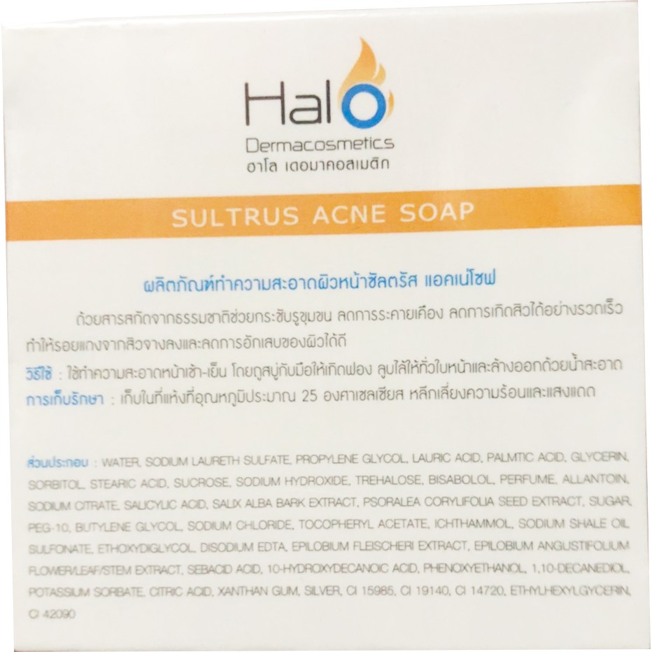 สบู่ Halo Dermacosmetics SULTRUS ACNE SOAP ฮาโล เดอมาคอสเมติก แอคแน่โซฟ (สบู่สิว) 50g