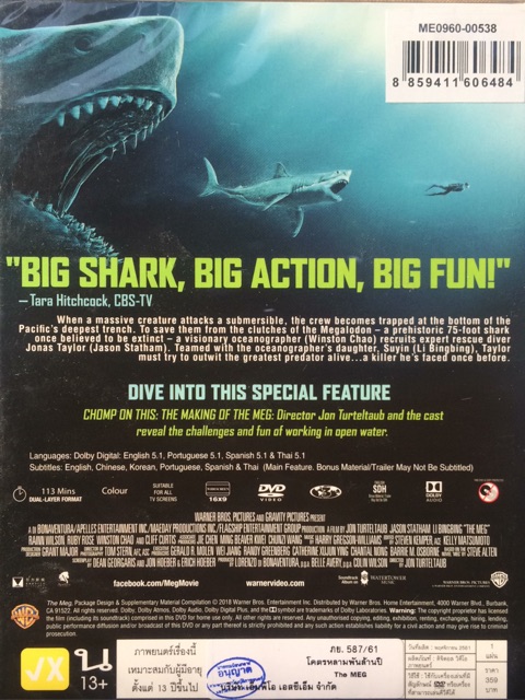 The Meg (2018, DVD)/ โครตหลามพันล้านปี(ดีวีดี แบบ 2 ดิส หรือแบบ 2 ภาษา หรือ แบบพากย์ไทยเท่านั้น)