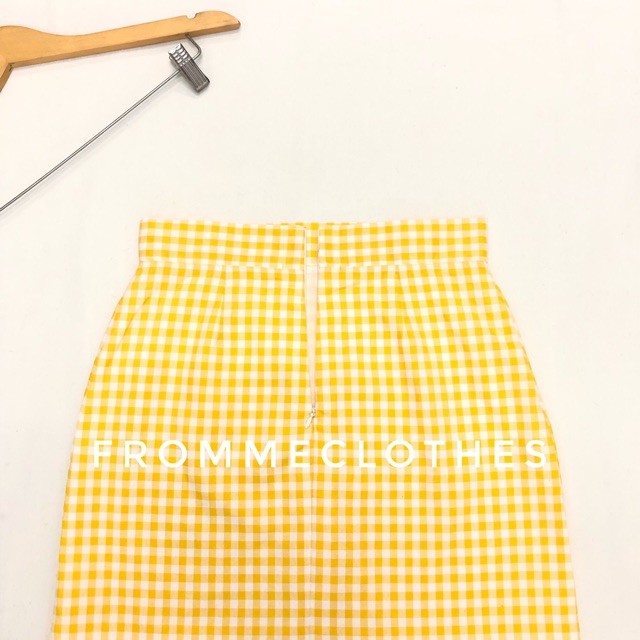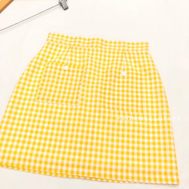 Frommeclothes☀️กระโปรงทรงเอผ้าคอตตอนลายตารางเหลือง(XS-5XL)