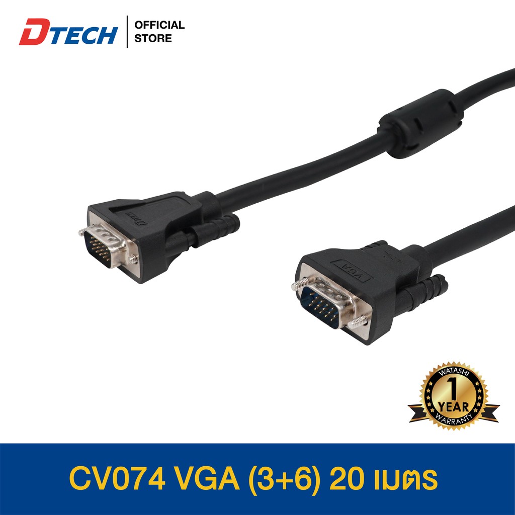 Dtech รุ่น CV074 สาย VGA 20 เมตร M/M ผู้/ผู้ 3+6 สำหรับต่อจอคอมพิวเตอร์,โน๊ตบุ๊ค,โปรเจคเตอร์ สินค้ารับประกัน 1ปี