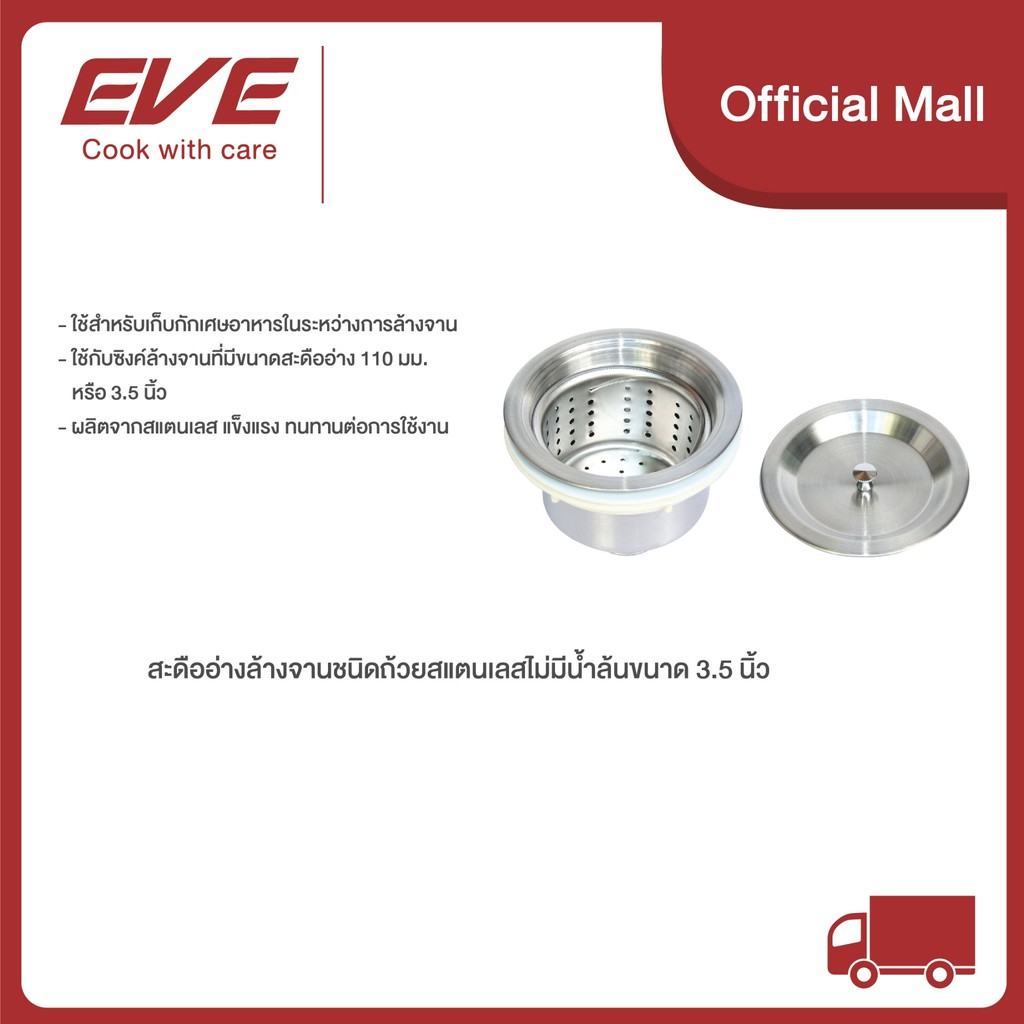 EVE สะดืออ่างซิงค์ล้างจานชนิดถ้วย 3.5 นิ้ว (110 มม.) ชนิดไม่มีน้ำล้น