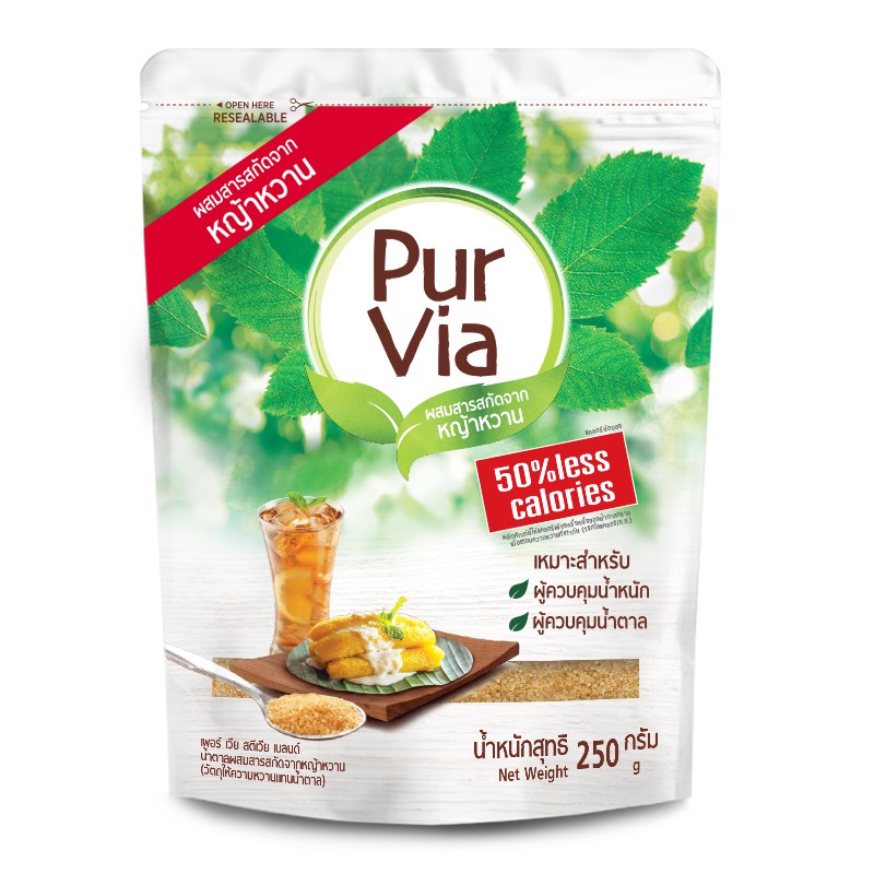 [5 ถุง] Equal Pur Via Sugar Blend เพอร์เวีย น้ำตาลผสมหญ้าหวาน ขนาด 250 กรัม -50% แคลอรี